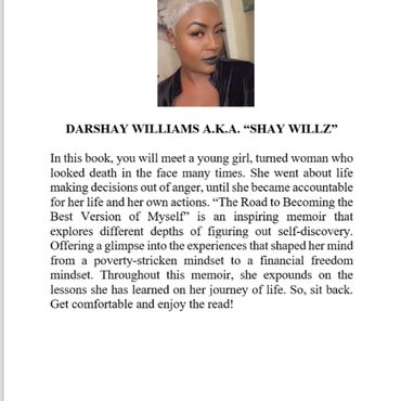 Shay Willz wrote a memoir titled; "The Road To Becoming The Best Version Of Myself". It is an inspiring memoir and relatable to both men and women! Dive in and get to know the author on a deeper level! This memoir will give you the tools to develop a new mindset and unlock your full potential! Purchase the blueprint now on Amazon!